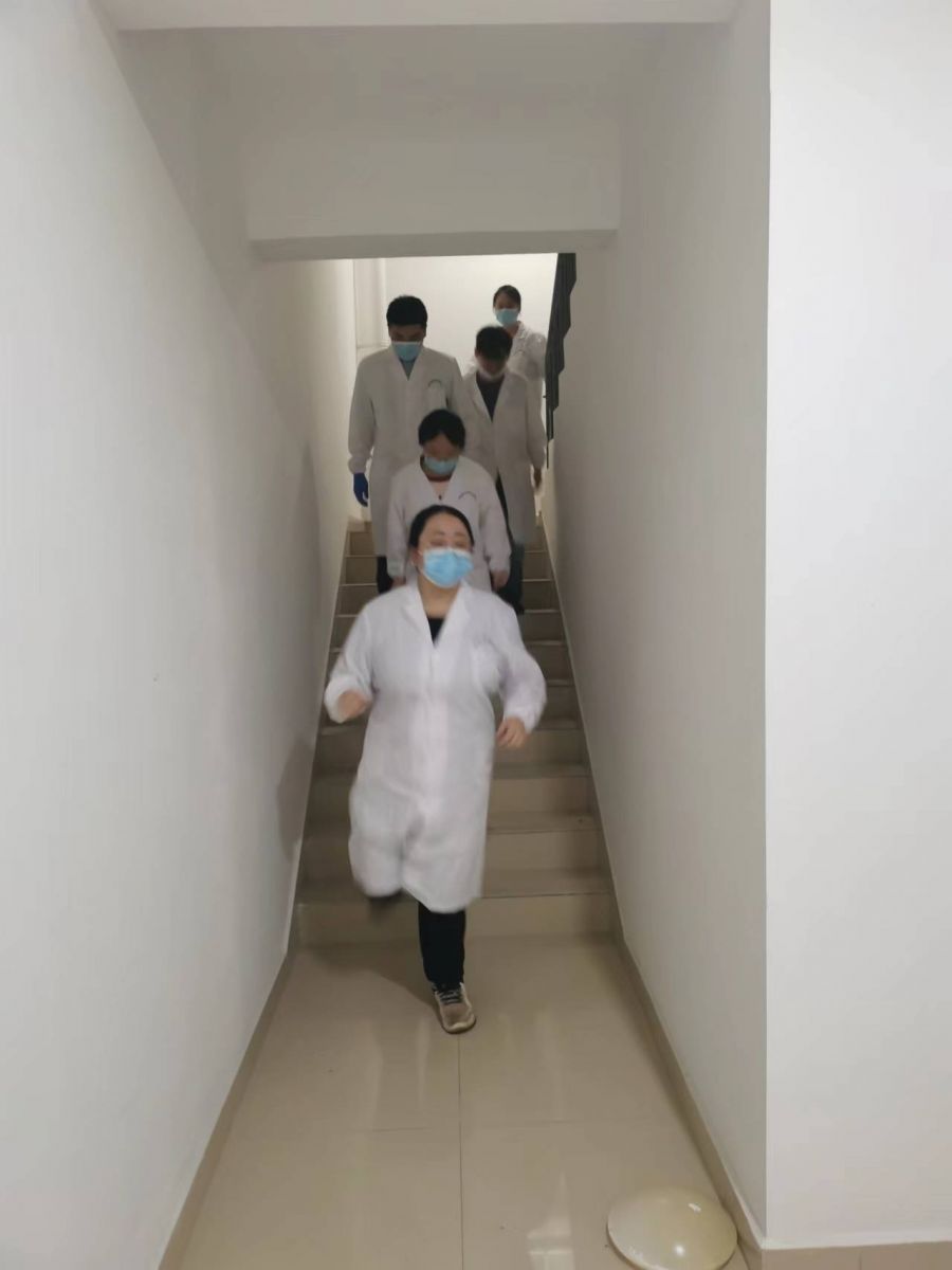我單位公司員工聽到消防警報聲響后,立即有序向安全通道撤離,跑至安全空曠區域